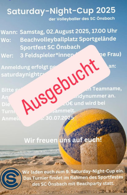 Am Samstag 22. Juli 2023 wird wieder ein Sturday Night Cup in der Beachvolleyballanlage am Önsbacher Sportplatz durchgeführt.